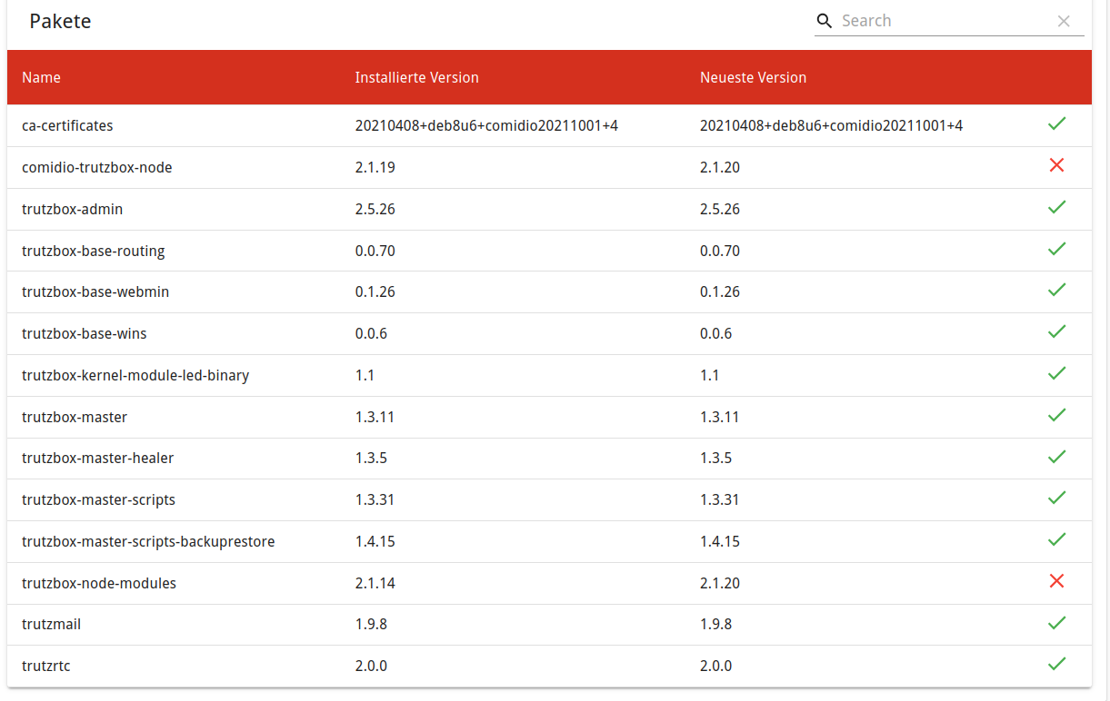 dazu gab es vom Februar eine Mitteilung über ein Update. Das Update ist bei meiner Box aber nicht installiert, trutzbox-node-modules haben die Version 2.1.14, aktuell ist 2.1.20. Über "Sichern & Wiederherstellen" bei den Systemeinstellungen habe ich versucht, das Update zu laden, aber nicht erfolgreich. Wie kann ich die aktuelle Version auf die Trutzbox bekommen?