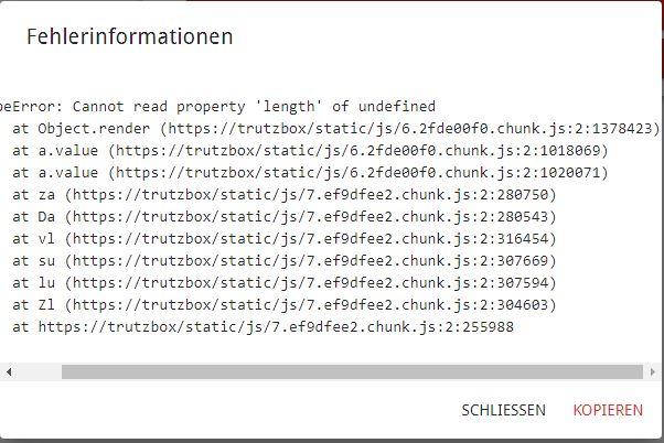 Beim Öffnen der Trutzbox- Oberfläche tritt folgender Fehler auf: