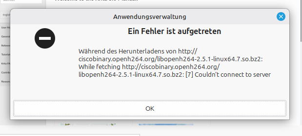 Da Windows10 ab Oktober 2025 regulär keine Sicherheitsupdates mehr erhält, habe ich auf Linux Mint22.2 umgestellt. Folgerichtig muss ich derzeit viele Programme neu installieren. Bei einigen Programmen wird die Flatpack- Installation abgebrochen und es erscheint bsw. für das Programm „Shotcut“ folgende Fehlermeldung: Der Abbruch und diese Meldung treten aber nur auf, wenn ich den Rechner über die Trutzbox mit dem Internet verbunden habe. Ist der Rechner direkt mit einer Fritzbox verbunden, erfolgt die Installation fehlerfrei und erfolgreich.