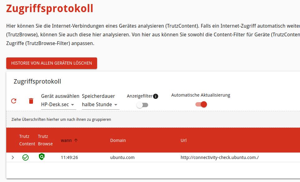 Gibt es noch eine andere Stelle in der Trutzbox, wo ich erkennen kann, dass die Trutzbox den Datenverkehr unterbricht?